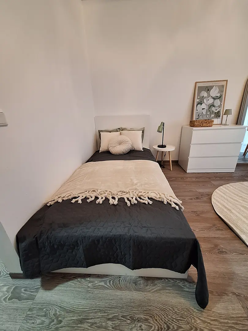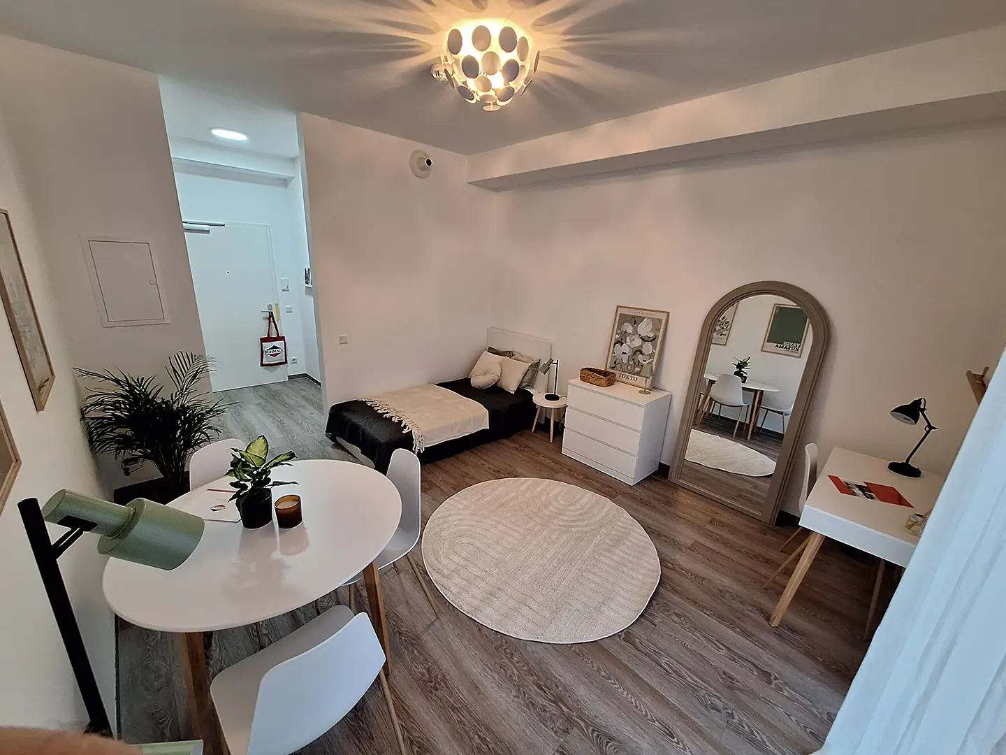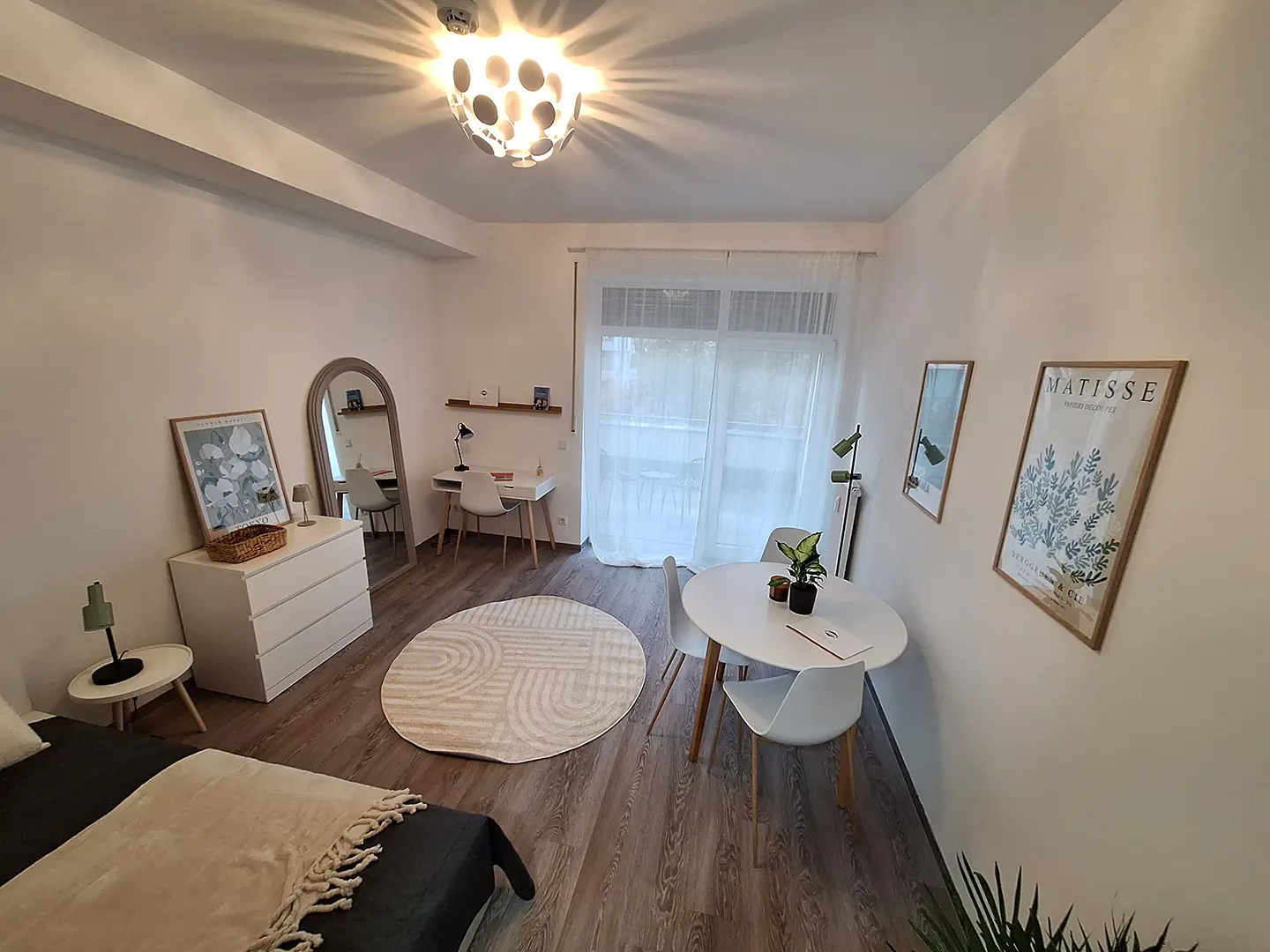 - Ein- und Zweizimmer-Wohnungen, teilweise mit Balkon oder Terrasse.